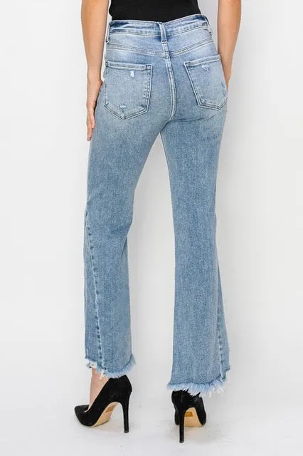 These high rise crop wide fray hem jeans are the perfect choice for a trendy and fashion-forward look. With their cropped length and frayed hem, they add a modern and edgy touch to any outfit. The high rise waist provides a flattering silhouette, while the wide leg style creates a relaxed and comfortable fit. These jeans can be dressed up or down for any occasion, making them a versatile wardrobe staple. Pair them with a tucked-in blouse and heels for a chic evening ensemble, or with a t-shirt and sneakers for a casual day out. Elevate your denim game with these stylish and on-trend jeans.